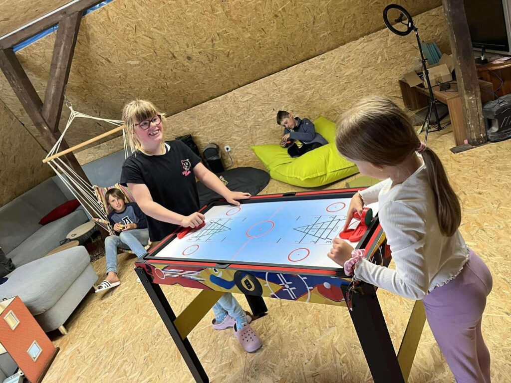 Hier geht’s ums Spielen, Toben und Entspannen. Hier warten Kisten voller Spielzeug, eine gemütliche Couch und sogar ein Fernseher. Ideal für Kinder oder einfach alle, die mal abschalten wollen.